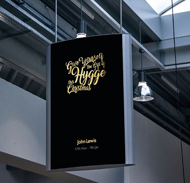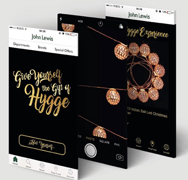 Hygge. A response to D&AD John Lewis brief, improving and developing the store. I came up with The Hygge Experience, working towards reduced stress during Christmas shopping. This experience allows you to enjoy everything hygge, providing members with food and drinks during breaks from their stressful shopping. Everything amongst this space is available to be scanned during the John Lewis app, within the hygge feature. From this you're able to click, buy and collect when exiting the hygge experience.